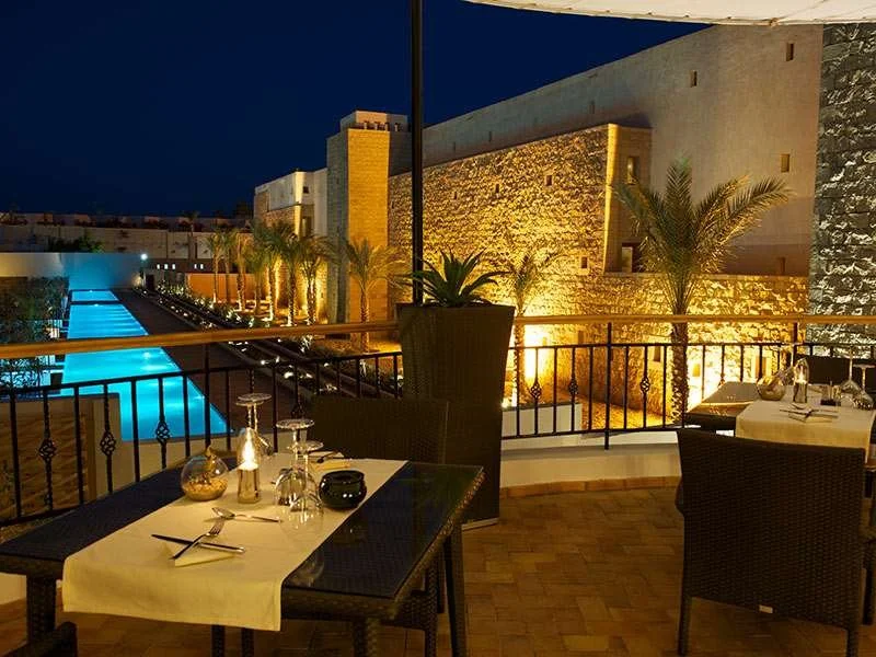 Fort Arabesque Resort is located approximately 27 km south of the city of Hurgada and overlooks Makadi Bay, one of the most beautiful bays on the Red Sea. The complex was conceived as a fortified city, protected from the desert wind by a wall clad in Nubian sandstone, and open, with a stepped section, towards the sea. In this way, all the rooms open onto terraces overlooking the gardens, the pools and the bay. The complex is based on a plan formed by the broken sections interspersed with the stairwell towers defining the various wings, which wrap around the gardens and pools. In an almost central position is the entrance building, which contains the reception, common areas, restaurants and the main guest services. The architectural choices are based on the reinterpretation of some typical features of local architecture in a contemporary key. The project, which constitutes a first phase followed by subsequent expansions, involved the construction of approximately170 rooms and suites.